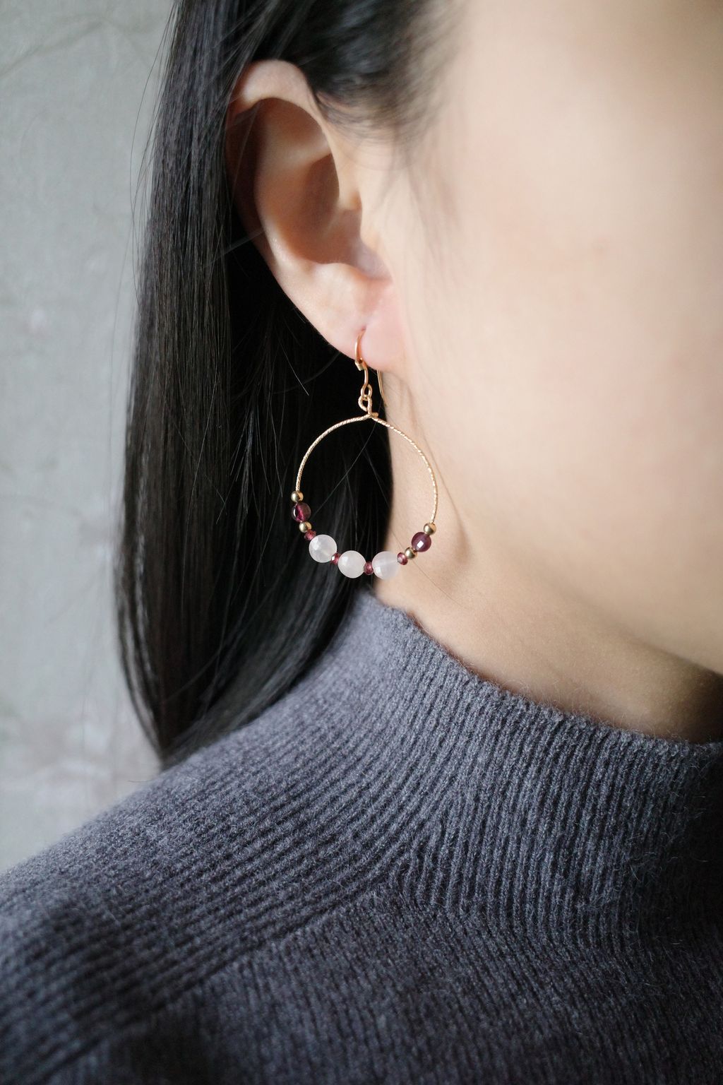 Pink Sparkle Circle Earring | 粉晶莓果圈圈耳環