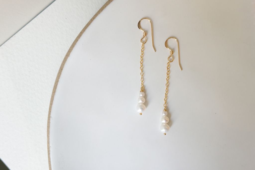 Triple Pearl Gradient Chain Earrings | 漸層三顆珍珠鏈條長耳環