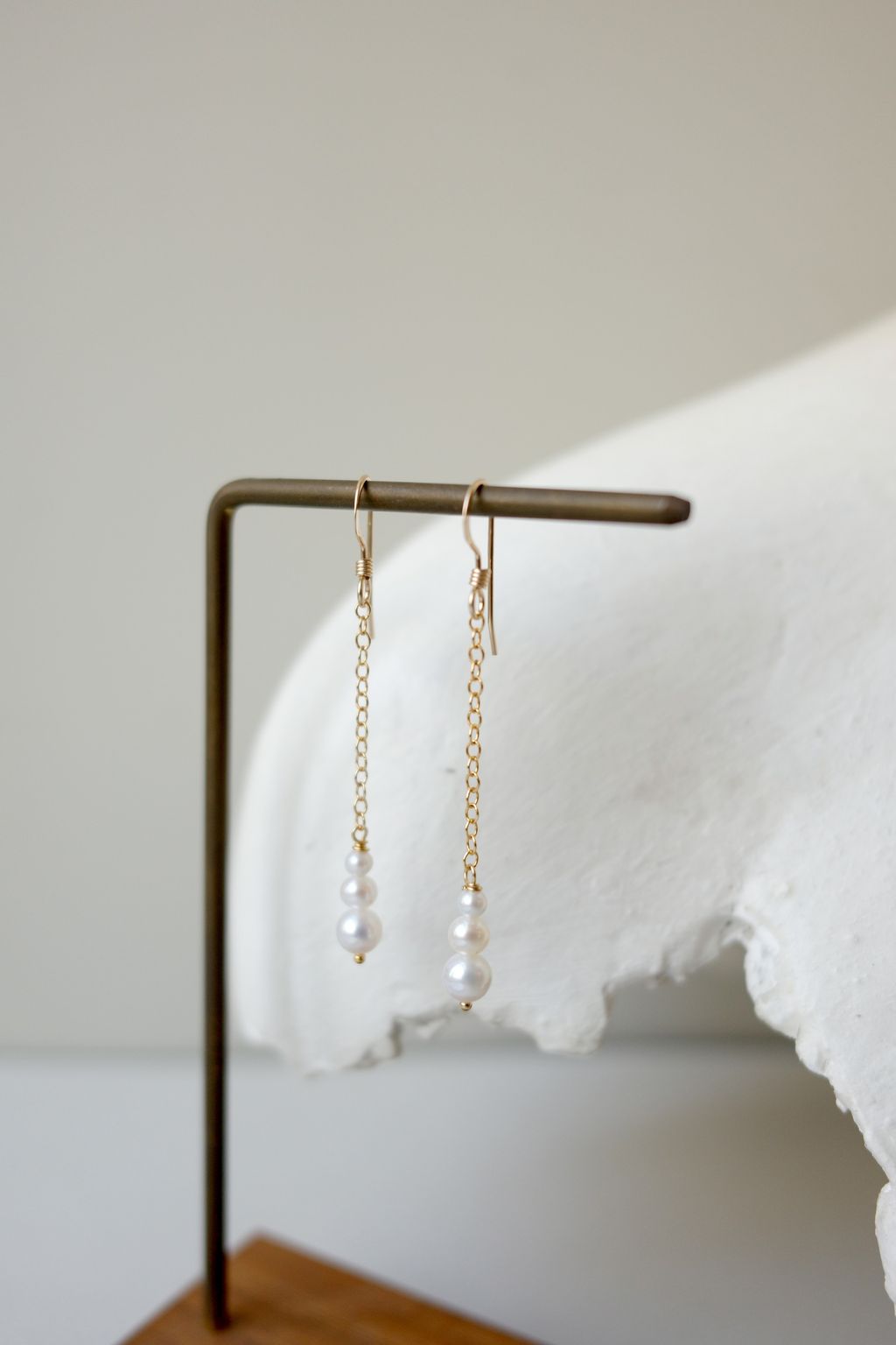 Triple Pearl Gradient Chain Earrings | 漸層珍珠鏈條長耳環