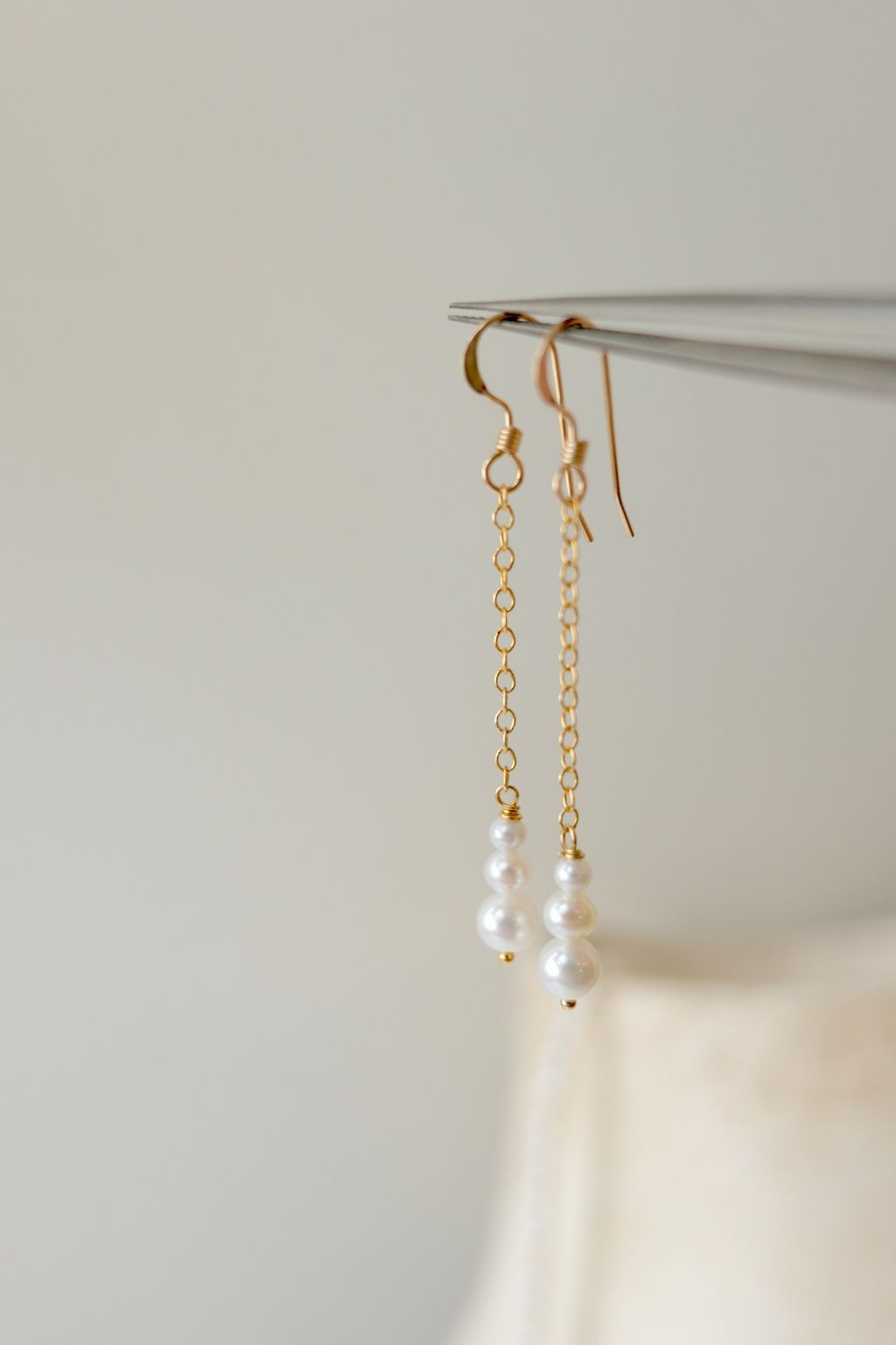 我們想為新娘製作配戴起來輕盈、舒服的珍珠耳環。