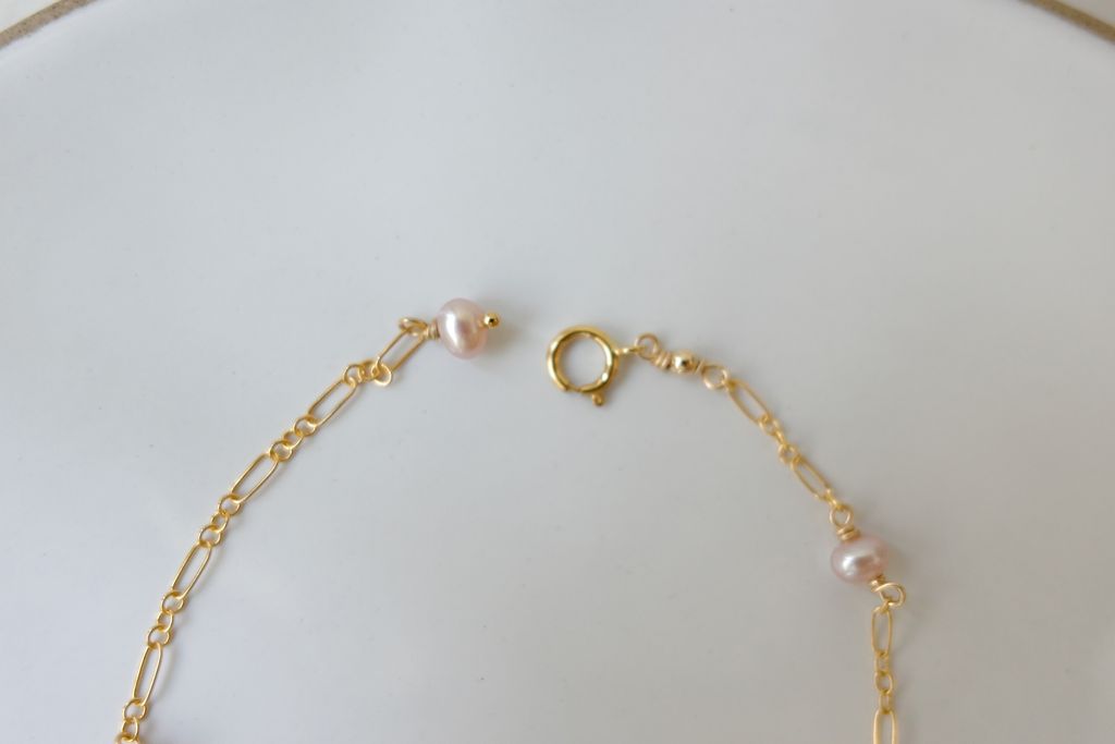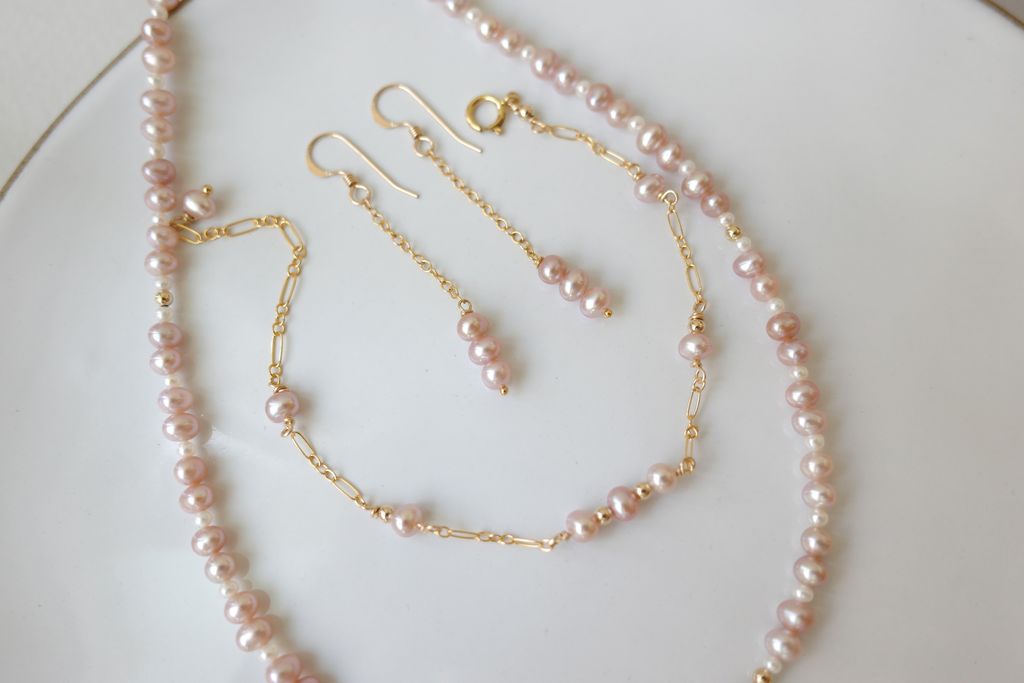 柔和的粉色小珍珠,搭配14k注金金屬,用簡約而細膩的方式,
